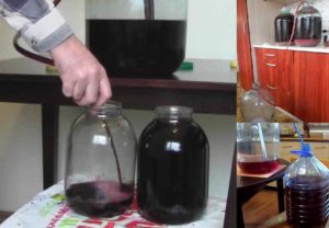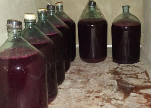Спочатку рецепт вина з винограду передбачає, що воно перебраживает близько місяця. Тримаємо його в помірному теплі! Поступово воно самостійно освітлюється, і булькання (роздування рукавички), яке спочатку дуже інтенсивне, поступово сходить нанівець. Якщо ви чітко дотримувалися рецепт домашнього вина з винограду, на дні вже виразно видно, що осіли дріжджі.