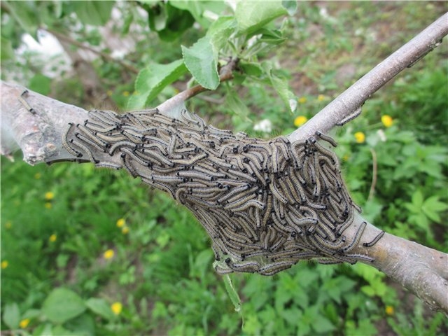 Після завершення цвітіння, в травні, процедуру повторюють. В цей раз використовують розчини хлорофосу та Лепідоцид, які борються з гусенью, попелиць, міллю та іншими комахами.