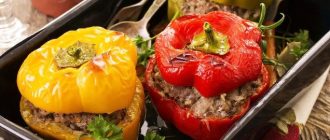 Фаршировані м’ясом і рисом перці, запечені в духовці — це відмінне ситне обідня страва,