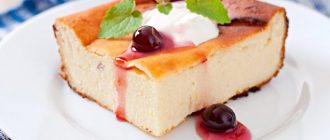 Пишну сирну запіканку з манкою в духовці часто подають у дитячих садках і школах.