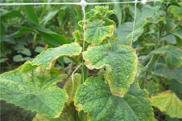 Це захворювання виглядає на кущах огірків наступним чином: спочатку на краях листя з’являються жовті ділянки. Потім стають жовтими ділянки між прожилками, при цьому самі прожилки залишаються темно-зеленими. Поступово зелень огірків повністю жовкне і гине. Так відбувається через нестачу хлорофілу, який проводиться для фарбування рослин в зелений колір. А хлорофіл не може вироблятися по ряду причин.