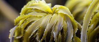 Ламінарія (морська капуста) відноситься до групи бурих водоростей. Запах у нього різкий, відразу видає