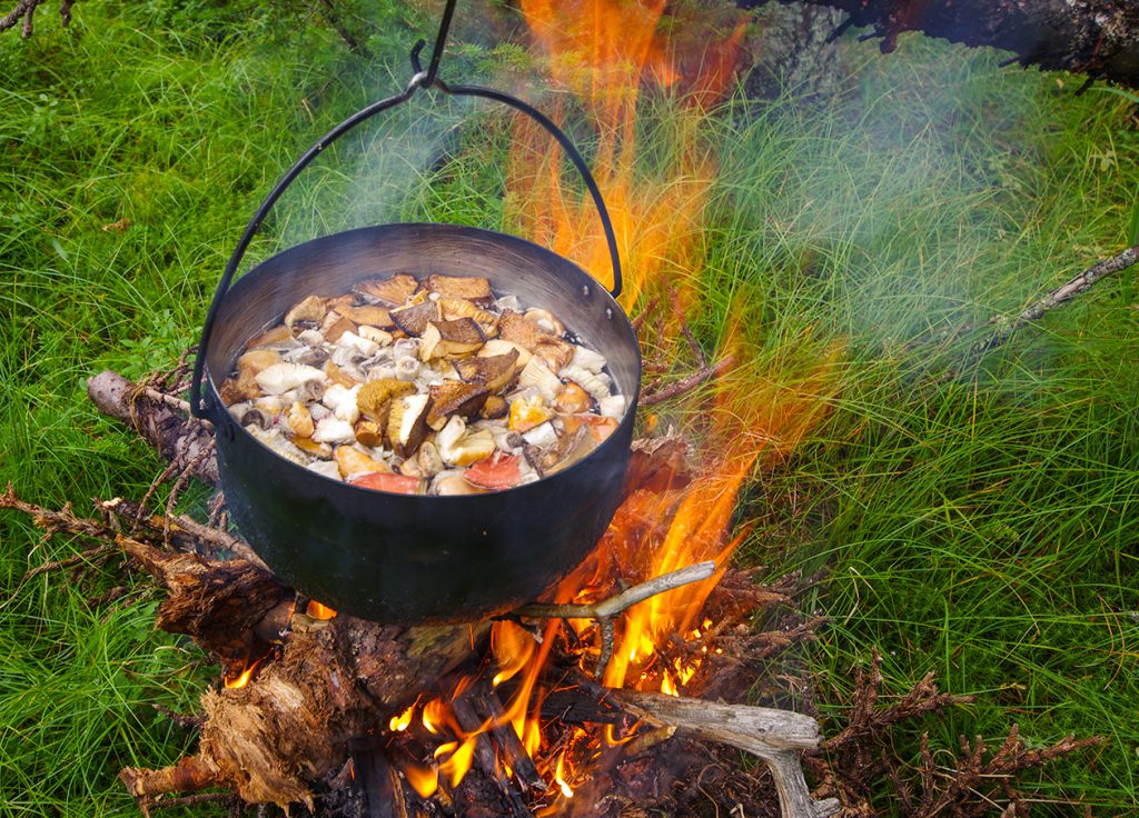 В імпровізованому поході вони затребувані, але куди частіше такі групи грибників готують «в загальному казані». Це означає, що кан на десять-двадцять літрів буде кращим рішенням, ніж казанок. А до самих канам необхідні «триножники». Також для їжі грибникові можна презентувати набір посуду (тарілка, кружка, столові прилади). Їх краще брати з такого матеріалу, який не нагрівається. Для шику можна подарувати маленькі кишенькові похідні сільнички і перечницю.