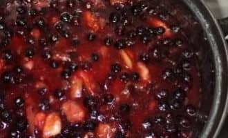 Чорноплідну горобину ретельно перебрати: видалити гілки, листочки, різне сміття і зіпсовані ягоди. Промити під водою і покласти в друшляк, щоб стекли краплі. Додати горобину до яблук, все перемішати і варити 1-1,5 години. Варення помішувати дерев’яною лопаткою або ложкою. По закінченні вказаного часу спробувати варення на смак ягоди горобини повинні стати м’якими
